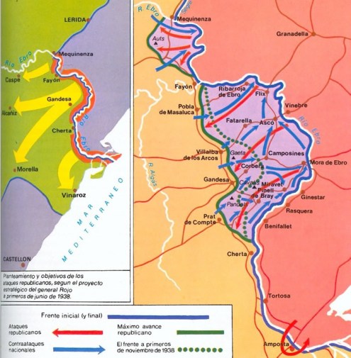 The Nationalist Army of the Maestrazgo is taken over by Morroccan General Mohammed Meziane, and they attack the Pandols-Cavalls sierra one more time, this time to end the battle to the river. Armed with the entire battalion, 100 aircraft from the Condor Legion and 175 guns, the Nationalists attack and take 19 fortified Republican positions, resulting in the deaths of 1,500 Republican troops and take another 1,000 men prisoner. With this, the Nationalists now can hike down the eastern side of the mountains to the Ebro, where its waters run along the border of Aragon in Catalonia. The Republicans are now in serious trouble, with a bloody Catalonia Offensive already planned by Franco.