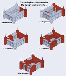 By September 22, all those inside were in the interior courtyard of the Alcázar, and most of the garrison has also left their posts on the exterior of the building for their own safety. Another two days of fighting made no progress for either side.