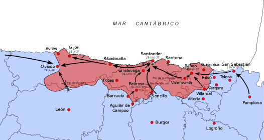 August 1937 focussed on the north. With the Basque region taken by the rebels, they turned east to take Santander in the Cantabria region. By September, the fascists again moved east again to take Gíjon in the Asturias region, with heavy mountainous battles taking place on cliffs that had kept Asturias safe from invaders for centuries. By October, Asturias was defeated by the northern army and could keep going west to claim Galicia, and Valencia is stripped of its title of capital of Spain in favour safer Barcelona. The Republican alliances of multiple militias fell apart, and many are fired from government and imprisoned, political alliances were ruined, and the dislike for the powerful communists pulled the left apart. The social revolution has suffered setbacks, including heavy battles and losses in the Aragon region, and there was breakdown of working class support in Barcelona.